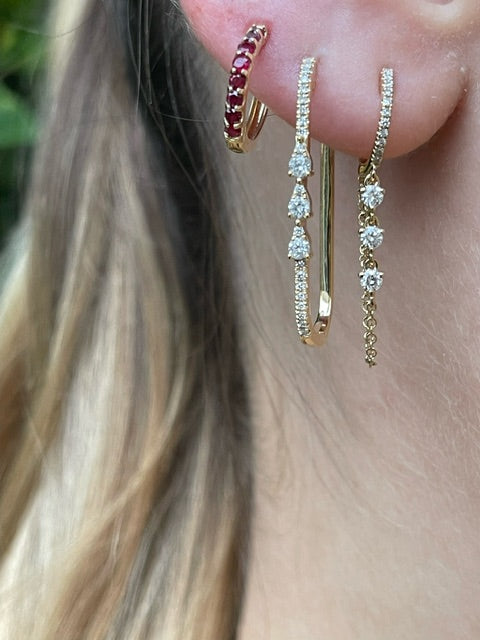 14K YELLOW GOLD 3 DIAMOND RECTANGULAR-SHAPE HOOP EARRINGS